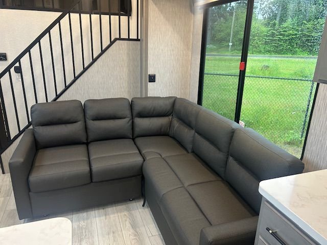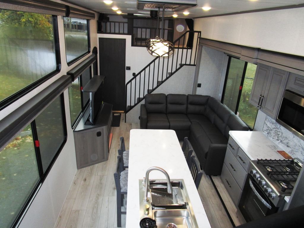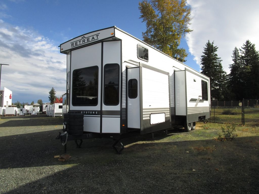 Imagine a home away from home, designed for extended stays and seasonal escapes, whether you're chasing the sun or seeking a lakeside retreat. This Keystone Retreat destination trailer, with its taller and wider design, offers a truly residential feel, creating a spacious and comfortable living environment ideal for families or couples seeking a luxurious escape.