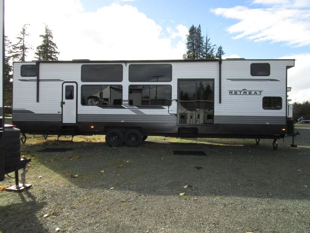 This Keystone Retreat destination trailer is more than just an RV; it's a luxurious and comfortable home away from home, designed for those who seek extended stays and unforgettable experiences in the beautiful landscapes around Courtenay and beyond.