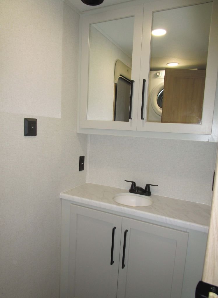 Extended Stay Package: MORryde Steps with Strut (wherever available)Washer and Dryer Prep, King Wi-Fi Extender System, Underbelly Armor, Soft Close Residential Drawers & Cabinets Throughout50 " Flat Screen Television 4 Camera Security Prep with Back-Up Cam, Full Coach Water Filter System, Power Fan in Bathrooms and Kitchen Solid Surface Countertops, Stainless Apron Sink with Strainer, Commercial Style Kitchen Faucet30" Over-the-Range Stainless Microwave, Countertop Extension, Designer Backsplash