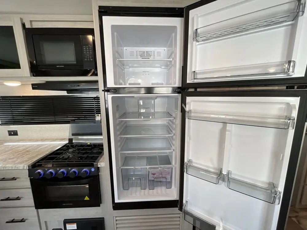 This Zinger is built to handle the elements, so you don’t have to worry about the weather. With a fully enclosed and heated underbelly with forced heat, you can stay comfortable no matter the season. The 13.5K BTU A/C keeps you cool in the summer, and the 6 Gal Gas/Elec DSI Water Heater ensures you have hot water for a relaxing shower at any time.