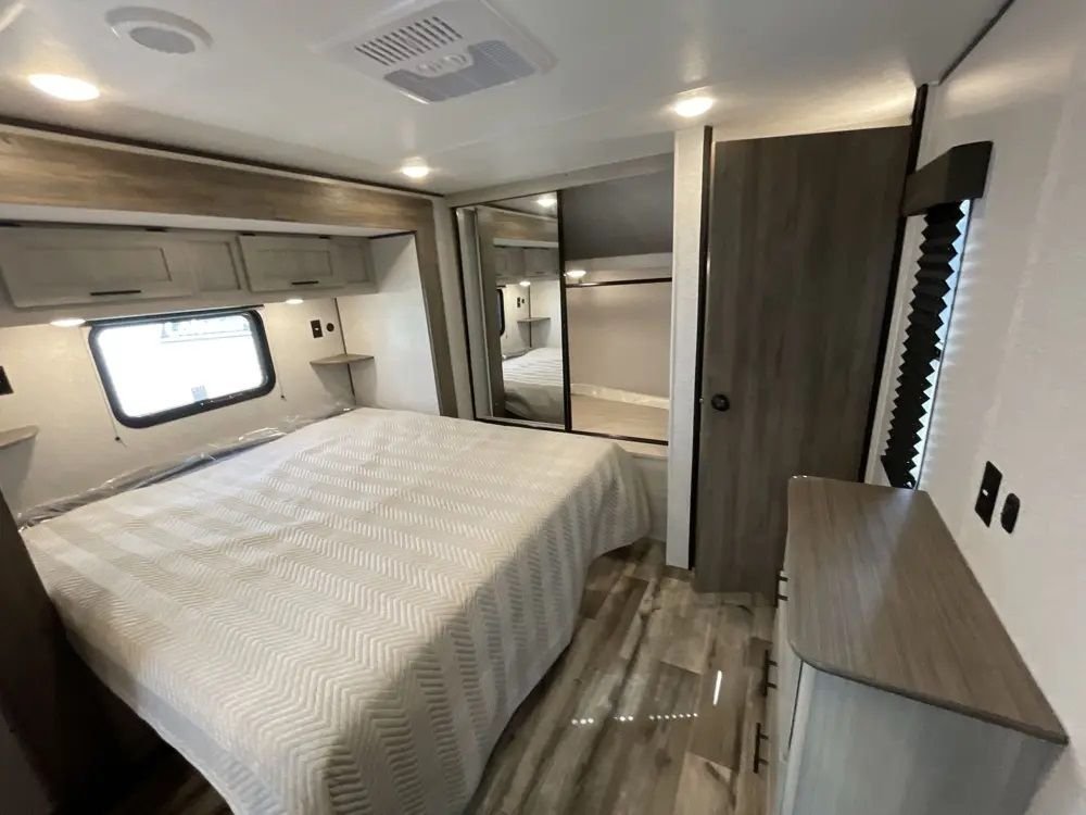 Step inside and feel the difference. With an 81-inch interior ceiling height and a flush floor slide-out, this trailer feels more like a modern apartment than a typical RV. The two-bedroom, two-bathroom layout provides all the space you need for family or guests, while the King-sized bed in the master bedroom offers a luxurious retreat at the end of the day.