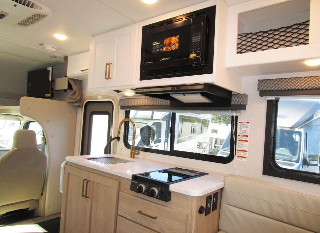 This isn't your grandfather's motorhome. Built on the powerful Ford E-Series chassis, the 19Z drives with the confidence of a much smaller vehicle. The robust 7.3L V8 engine and 450 lb.-ft of torque means you'll have all the power you need, whether you're cruising on the highway or navigating a mountain pass. With the 8,000-lb. trailer hitch, you can bring your favorite toys along for the ride—a small boat, a side-by-side, or a tow car for local trips. The backup monitor and power windows and door locks make every stop and start effortlessly simple, turning the journey into as much of a vacation as the destination itself.