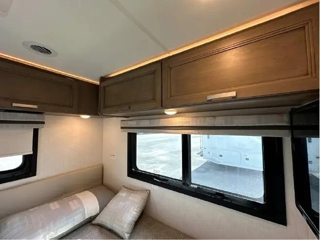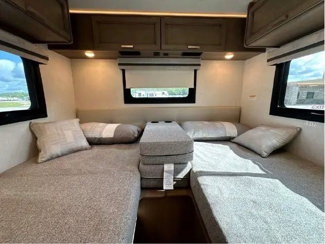 Versatile Sleeping: The rear features twin sofa beds that convert into a massive full-unit width bed, plus a Power Drop-Down overhead bunk for extra guests.