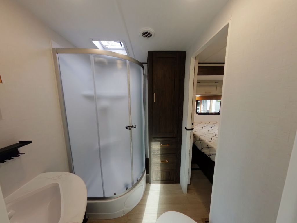 This Zinger is built to handle the elements, so you don’t have to worry about the weather. With a fully enclosed and heated underbelly with forced heat, you can stay comfortable no matter the season. The 13.5K BTU A/C keeps you cool in the summer, and the 6 Gal Gas/Elec DSI Water Heater ensures you have hot water for a relaxing shower at any time.