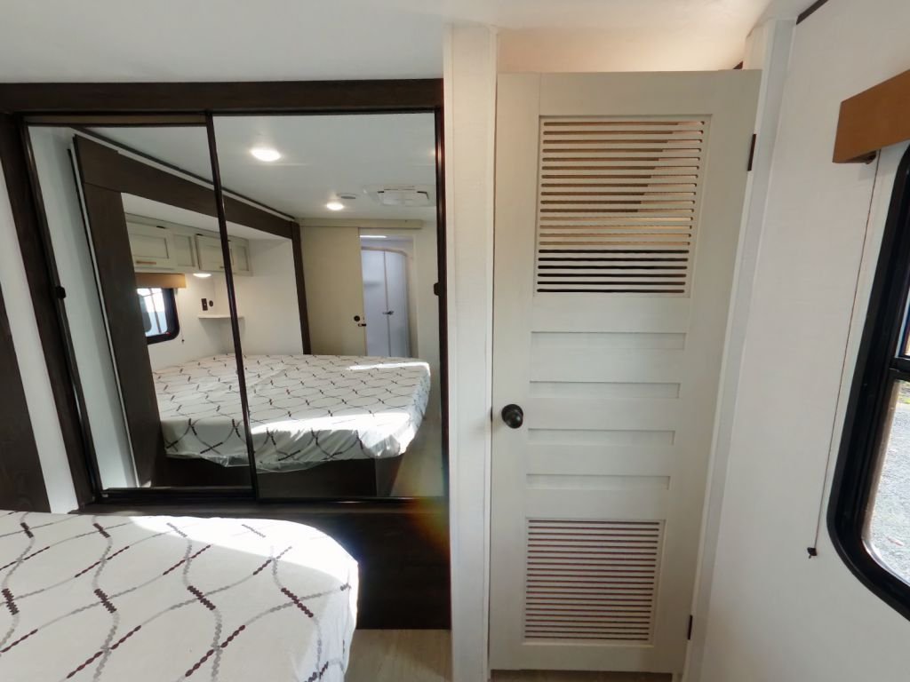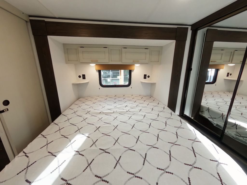 Step inside and feel the difference. With an 81-inch interior ceiling height and a flush floor slide-out, this trailer feels more like a modern apartment than a typical RV. The two-bedroom, two-bathroom layout provides all the space you need for family or guests, while the King-sized bed in the master bedroom offers a luxurious retreat at the end of the day.