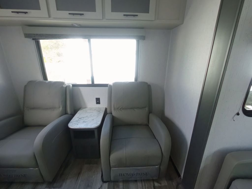 Imagine stepping into your own private oasis, a spacious and stylish retreat where you can curl up in swivel chairs and gaze out at breathtaking panoramic views. This RV redefines glamping with its super-large slide, private bedroom, and thoughtful amenities, creating a truly luxurious camping experience.