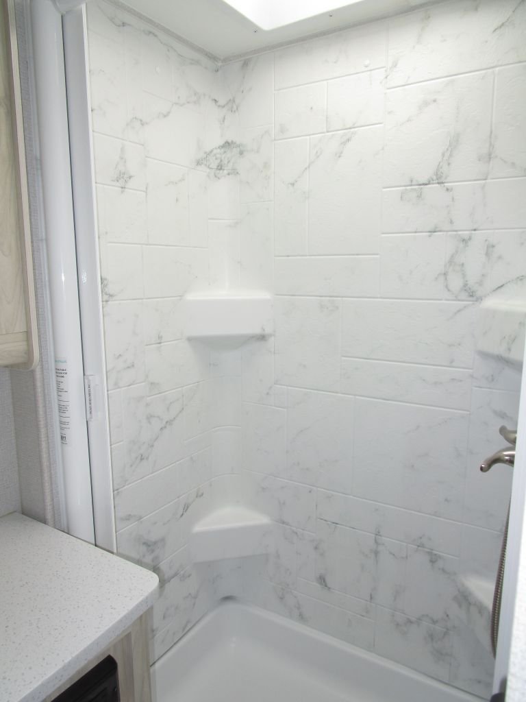 •  Fiberglass Mastery: Crowned, laminated fiberglass roof and 2" thick Gel Coat sidewalls with waterproof composite material.