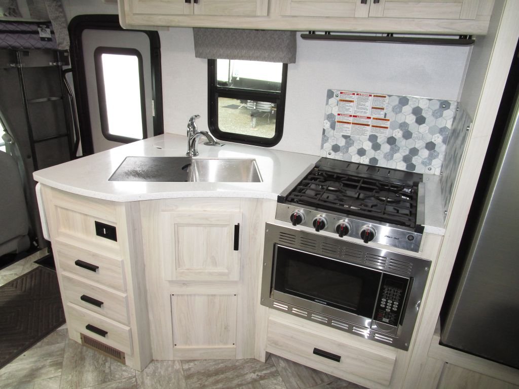 •  Chef’s Kitchen: Sealed burner range, flip-up counter extension, and upgraded soft-close drawer glides.