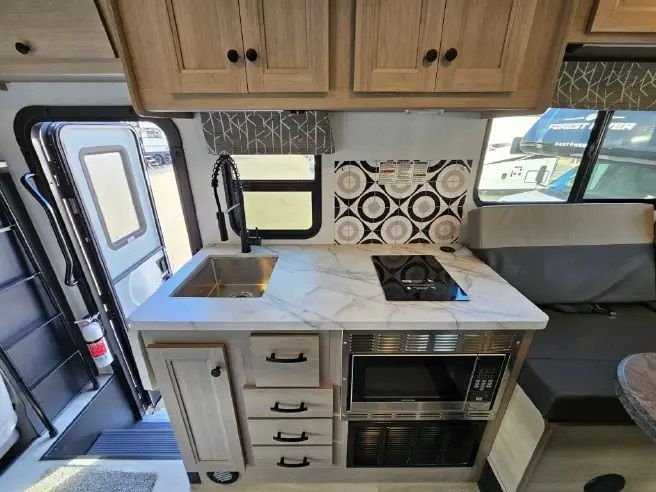 Home-Cooked Meals, Anywhere: A large 10.7 Cu. ft. 12V Fridge and 1.3 Cu. ft. Convection Microwave let you prep gourmet camp meals without relying on fast food.