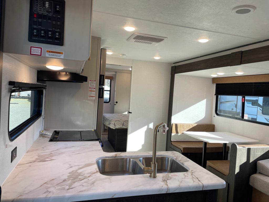 This Zinger is built to handle the elements, so you don’t have to worry about the weather. With a fully enclosed and heated underbelly with forced heat, you can stay comfortable no matter the season. The 13.5K BTU A/C keeps you cool in the summer, and the 6 Gal Gas/Elec DSI Water Heater ensures you have hot water for a relaxing shower at any time.